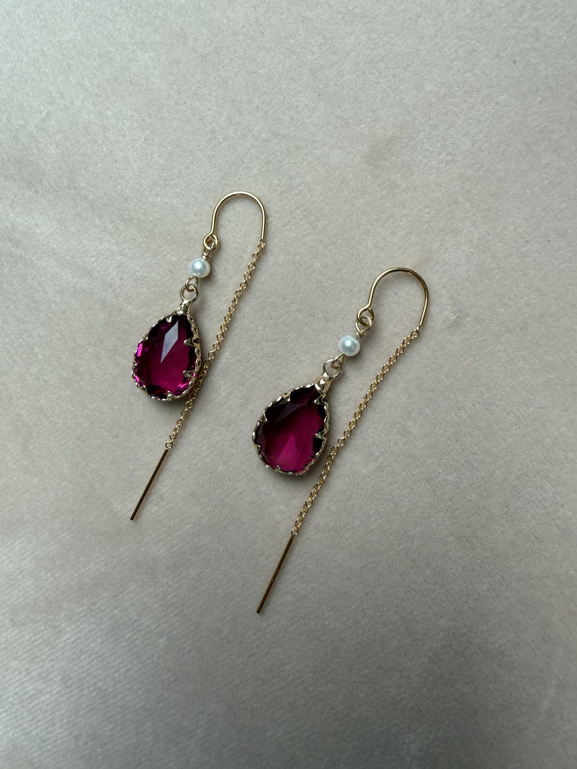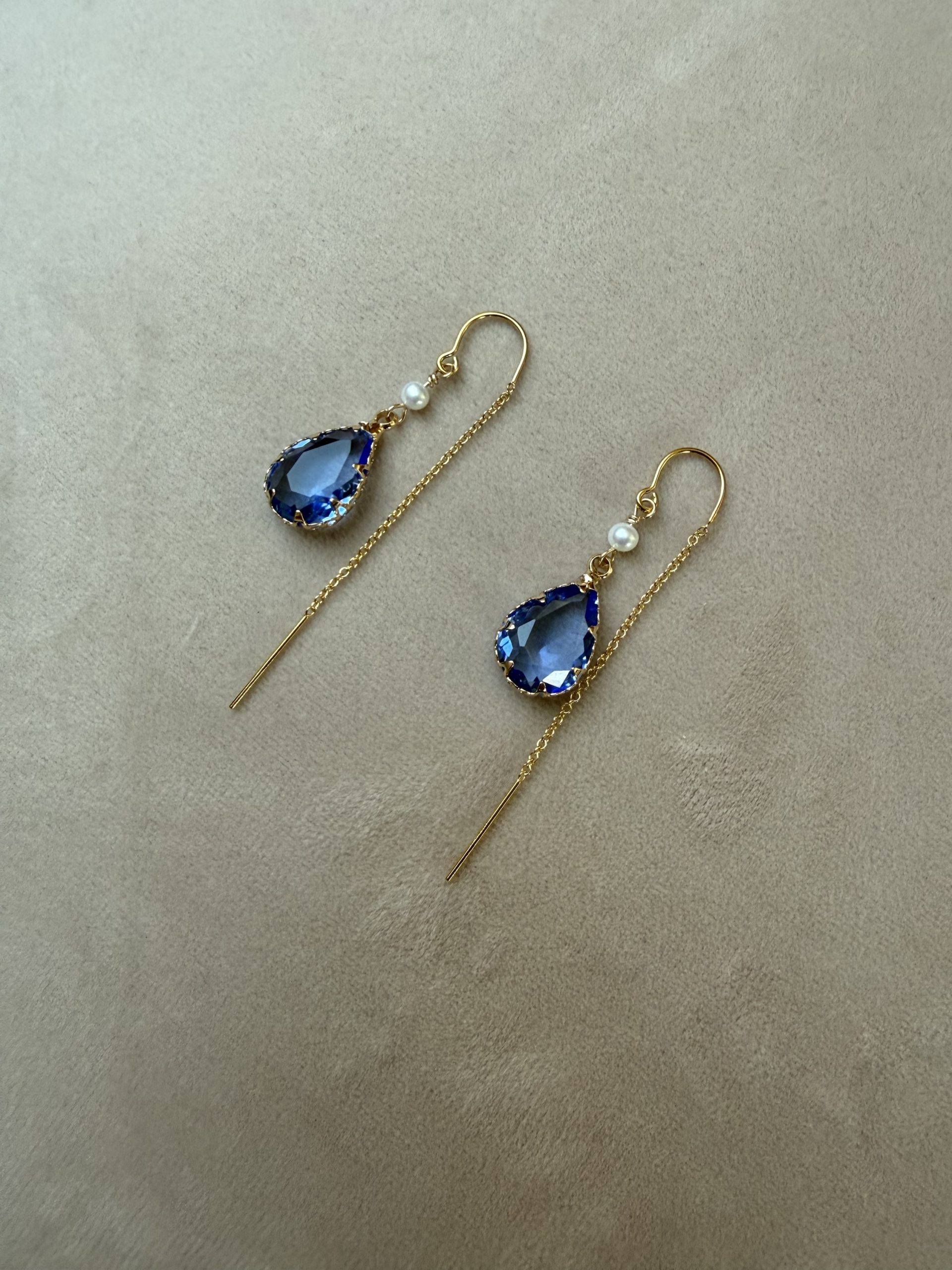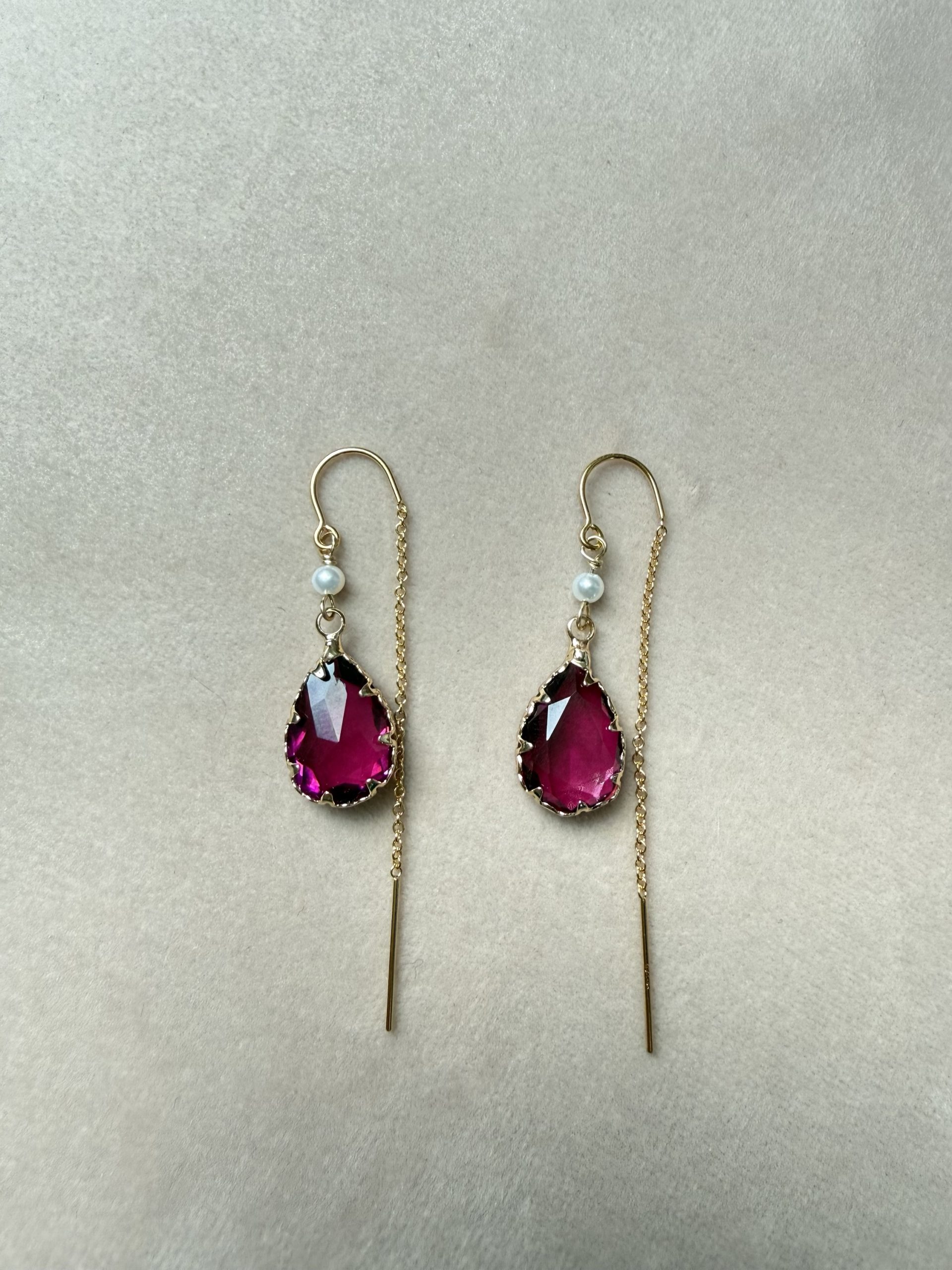 Boucles d’oreilles, monture fils d’oreille en Gold filled /or laminé 5 microns et pendentif Cristal forme poire 10 × 15 mm et mini perle de culture 3 mm, longueur pendentif Total 3 cm