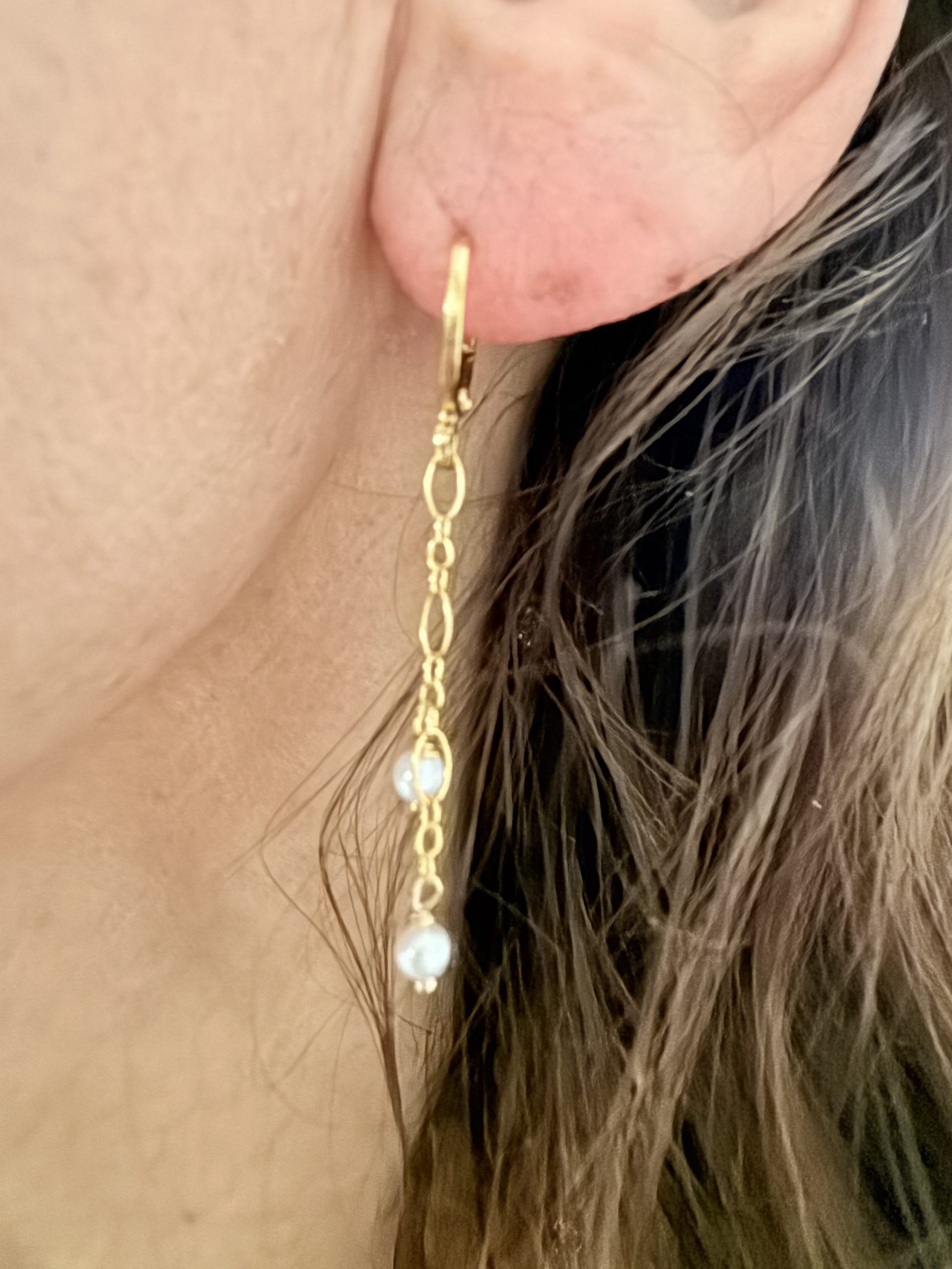 Monture créole dormeuse en plaqué or , chaînette en or laminé 5 microns maille alternée ornée de 2 mini perles de culture 3 mm