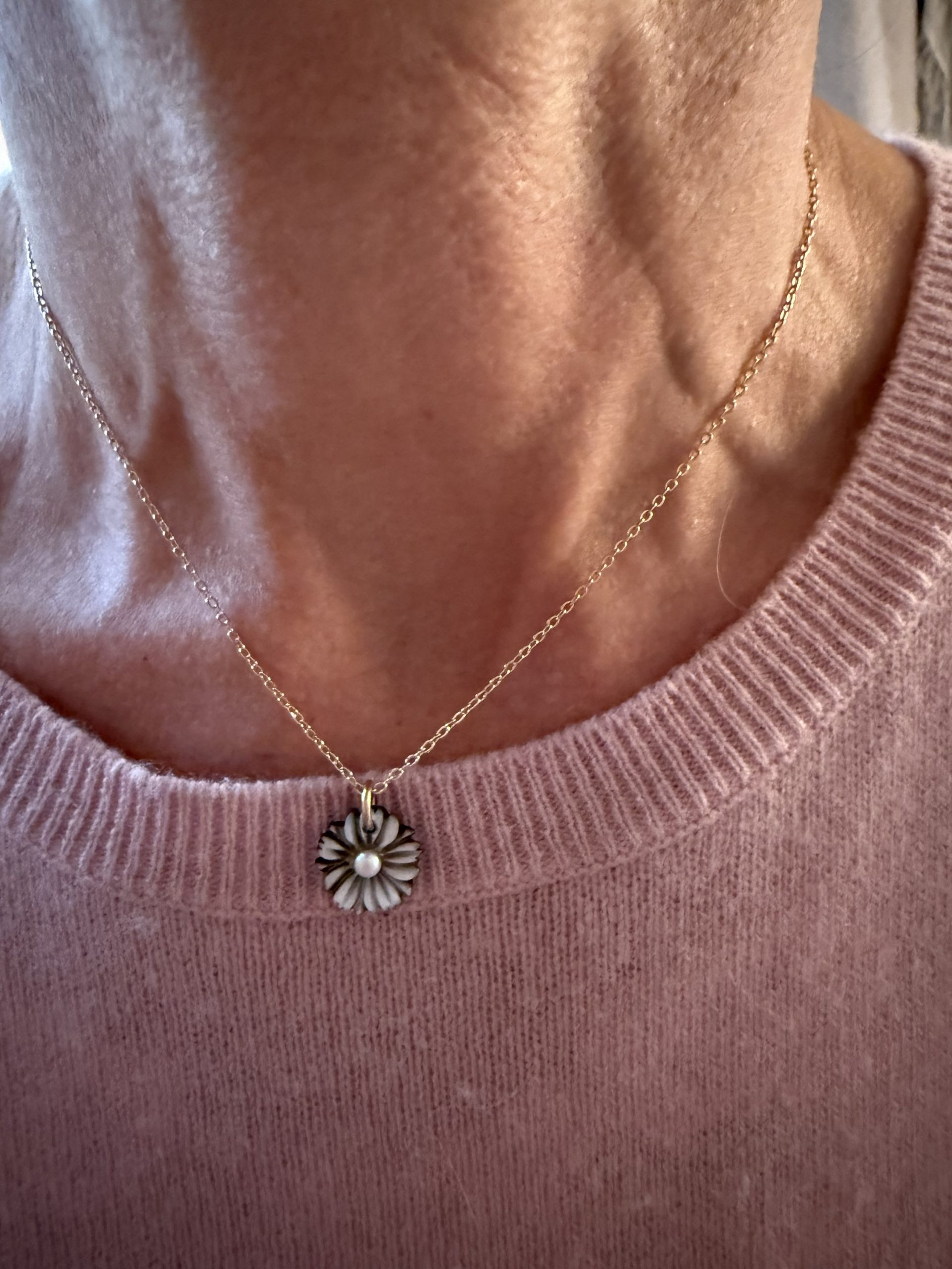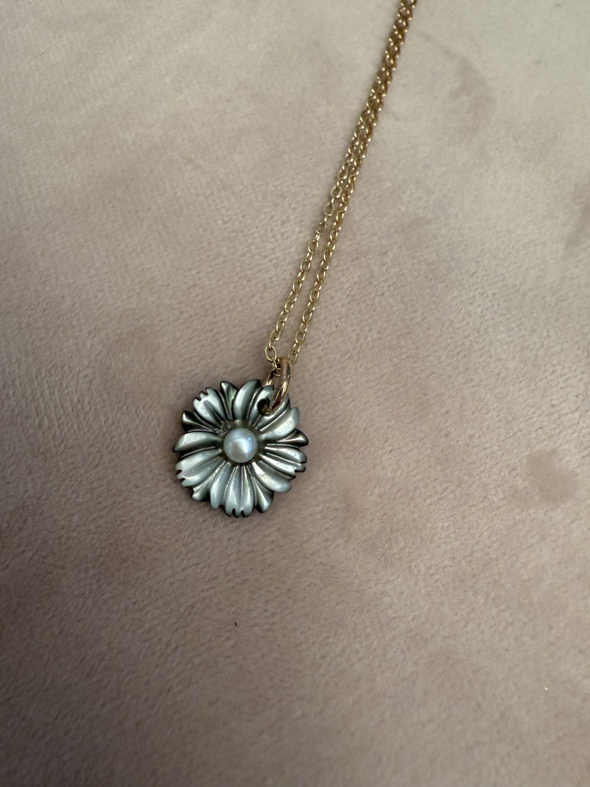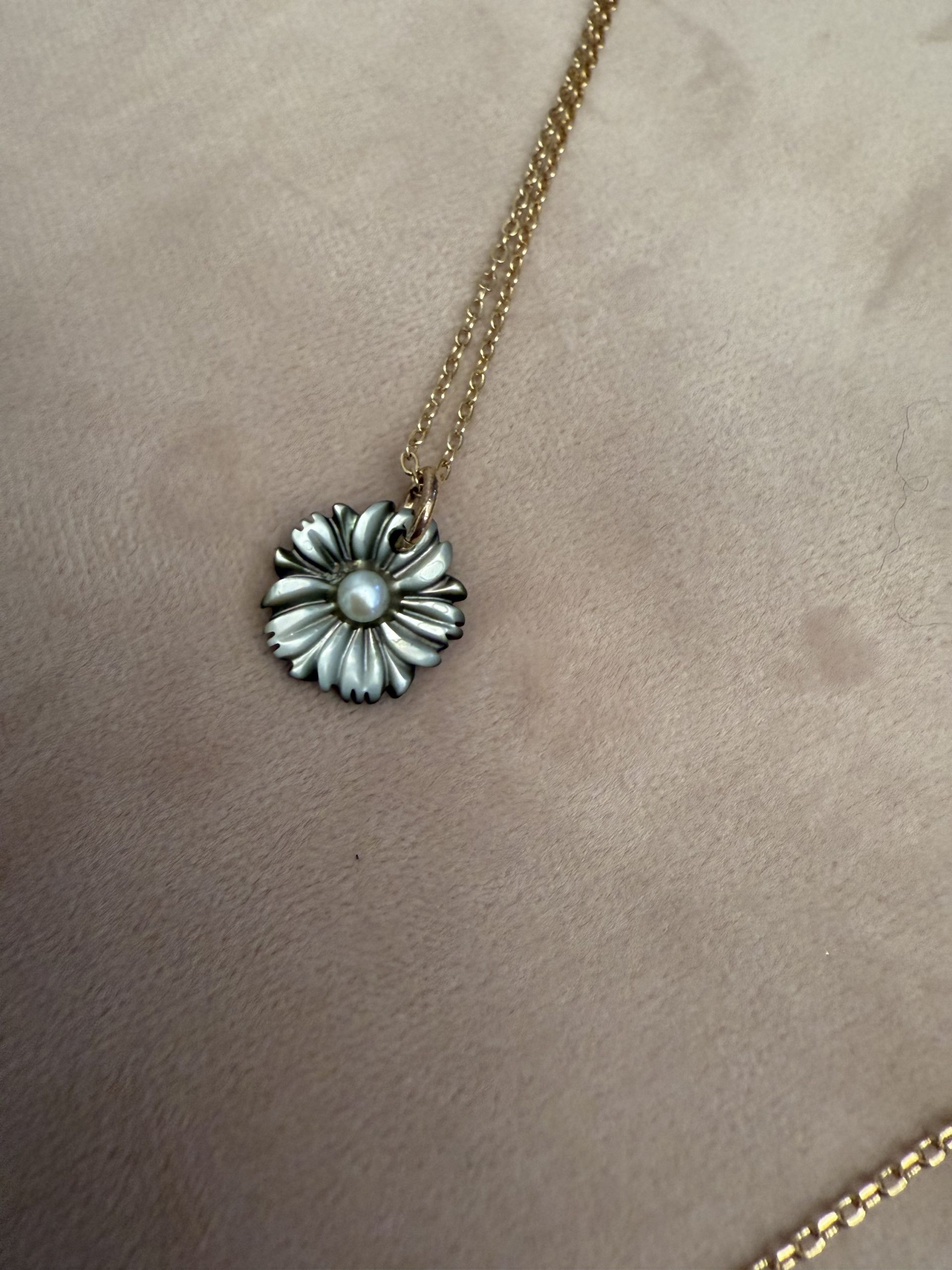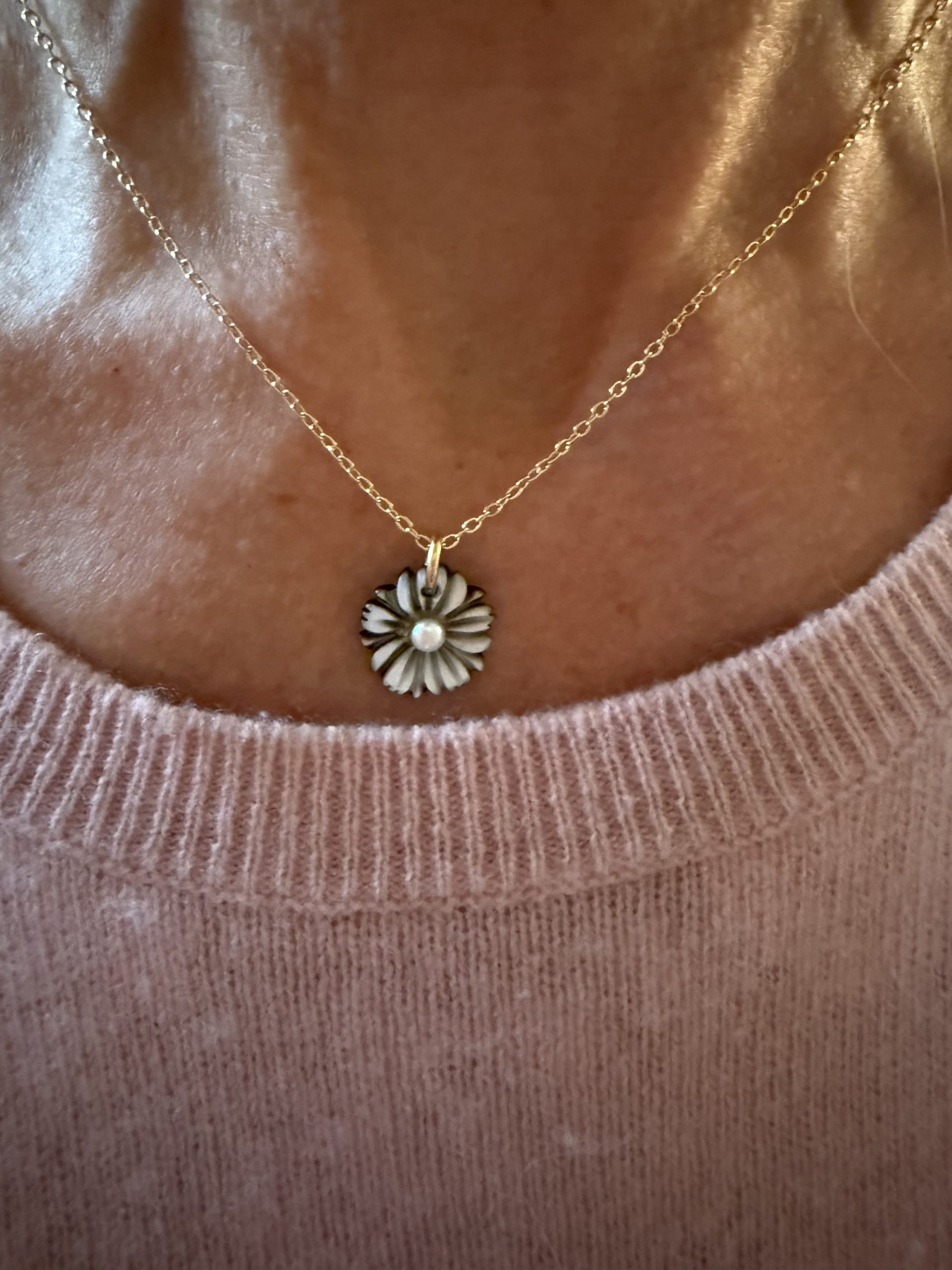 Chaîne en plaqué or, et pendentif Marguerite en nacre de Tahiti, orné d’une perle de culture réglable 40/43 cm